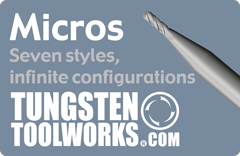 Tungsten ToolWorks is a manufacturer of customized (special) solid carbide cutting tools, sold worldwide under the Tungsten ToolWorks brand name. Products include solid carbide end mills, drills, reamers, burrs, micro tools, sub-miniature tools, micro tools, engraving tools, boring tools, keyseat cutters, burrs, slitting saws, carbide cylinders, countersinks, routers, radius mills, CBN tools, compression tools, and more. Technologies include SmoothCoat PVD hard coatings, SmoothGrind polished cutting edges, SmoothEdge prep and hone, and SmoothContricity shrink fit ready shanks. Coatings include D2 CVD diamond, D1 PVD amorphous diamond, TA TiAlN, AT AlTiN, TN TiN, TC TiCN, and A1 TiB2. Industries using our products include aerospace, semiconductor, die & mold, micro (nano) machining, woodworking, medical, consumer electronics, automotive and more. Workpiece materials to be drilled, milled, reamed, routed, engraved and more include titanium (6Al-4V, 5553), stainless (303, 304, 316, 410, 420, 440C, 15-5, 17-4, 13-8, 316L), tool steels (A2, D2, H13), general steels (1018, 1020, 4140, 4340, P20), Inconel (625, 718), cast iron, non-ferrous materials including aluminum, copper, brass, bronze, wood & plastics, CFRP (carbon fiber reinforced plastic), graphite, composites, fiberglass, and more. Tungsten ToolWorks is a Tool Alliance company.