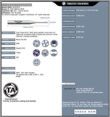 After activating your new account, you're only ONE minute away from completing quotes for special carbide cutting tools just like this!